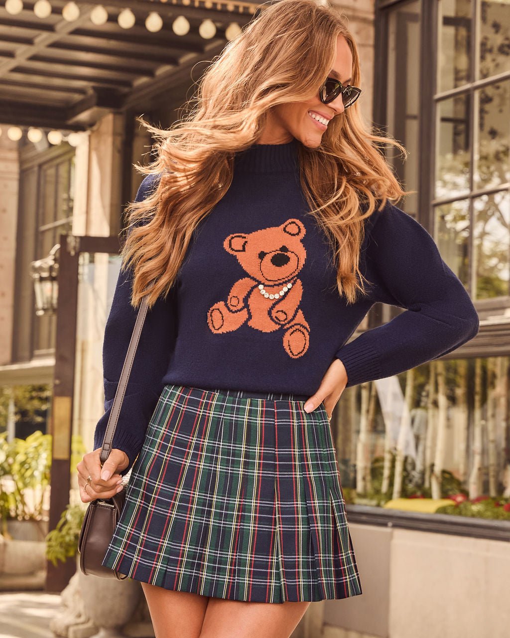 It’s all about luxe comfort with a hint of fun and the Lavish Teddy Pullover Sweater is it. Crafted from soft knit fabric. this pullover features a ribbed neckline. cuffs. and hem for a snug fit. The front teddy bear graphic. complete with a sparkly rhinestone necklace. adds a playful touch that’s both unique and glamorous. Perfect for those September days when you want to stay warm and stylish. this sweater pairs effortlessly with your favorite jeans or skirts.