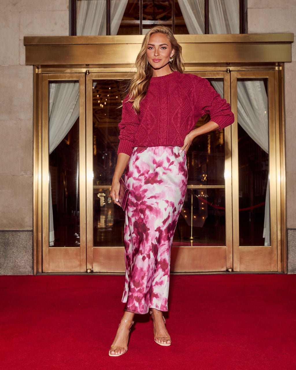 Cozy up in style with the Warming Up Cable Knit Sweater. your go-to for chic and comfortable vibes. Crafted from midweight cable knit fabric. this sweater strikes the perfect balance between warmth and style. making it a must-have for cooler days and special occasions alike. The classic cable knit design adds texture and charm. while the ribbed neckline. cuffs. and hem offer a snug. polished finish.