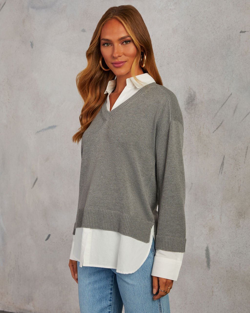 ??Poplin cotton top with built-in sweater overlay